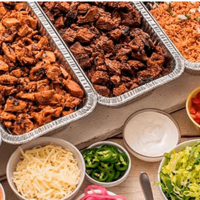 Each guest enjoys 3 to 4 tacos: Steak, Chicken, Pastor or Mixed sautéed veggies. Each order comes with sides of flavorful rice and hearty beans. For toppings , fresh lettuce, juicy tomatoes, mixed cheese, crunchy onions, cilantro, pico de gallo , cheese sauce , fresh guacamole and of course chips and salsa.. Let’s taco ‘bout a great time! 🎉All serving tools included!