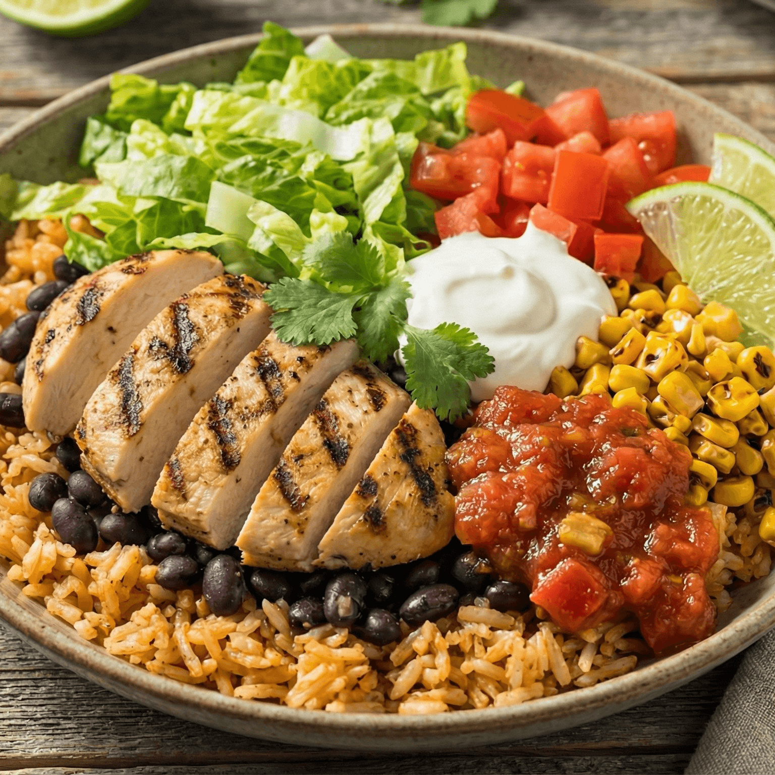 Make your own Salad 6 different type of meats, two different types of rice, two different types of beans and 16 different toppings to choose from.