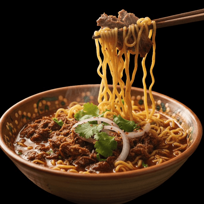 Picture tender, slow-cooked beef simmered in a spicy, aromatic broth, served over perfectly chewy noodles. Topped with fresh cilantro, onions, and a squeeze of lime, each slurp is a burst of flavor that’s both hearty and satisfying. It’s a fun twist on classic ramen that’s sure to tantalize your taste buds!