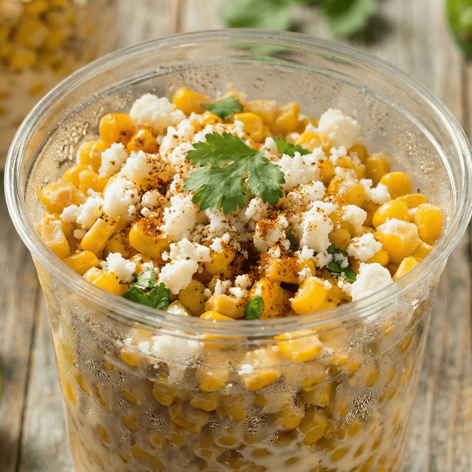 Delicious mexican roasted corn served with cotija cheese, mayonnaise and spices