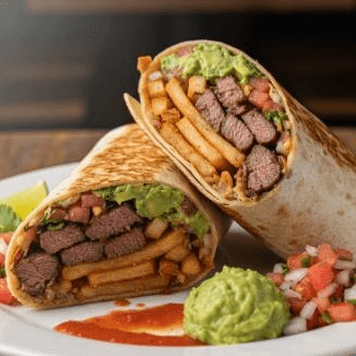 Delicious tender Steak, French fries, pico de gallo, spicy salsa and guacamole.